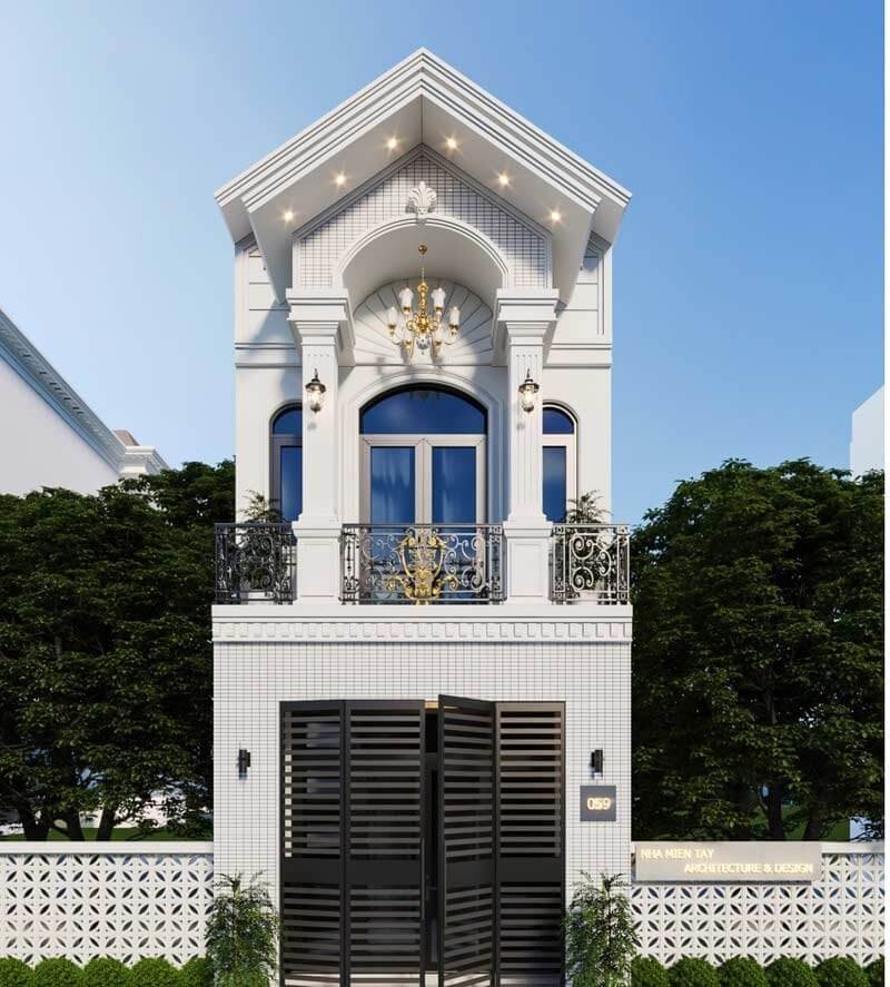 Những thiết kế nhà ống hai tầng mái ngói tân cổ điển thường tỏa ra vẻ đẹp sang trọng và lôi cuốn, gây ấn tượng tột độ với nhiều gia chủ.