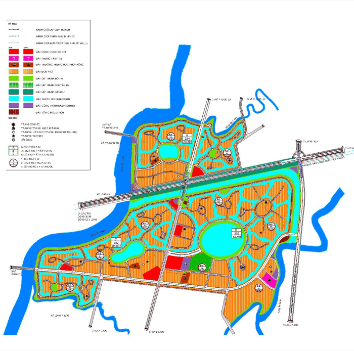 • Phân khu D: Nằm ở phía Tây Bắc với diện tích 137,57 ha, phân khu này được phát triển ven sông, khai thác lợi thế cảnh quan và không gian mặt nước. Khu vực này sẽ kết hợp giữa khu dân cư và các tiện ích công cộng, tạo nên một không gian sống năng động và đa dạng.