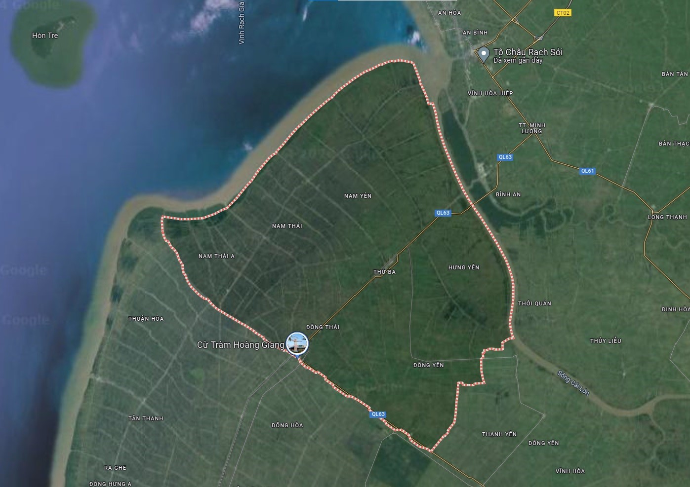 • Tiếp giáp với huyện An Minh về phía Tây Nam.