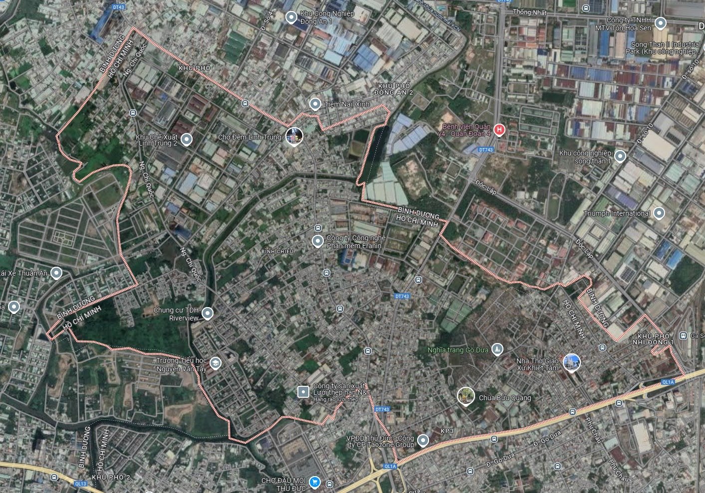 • Phía Tây: Giáp với thành phố Dĩ An, tỉnh Bình Dương.