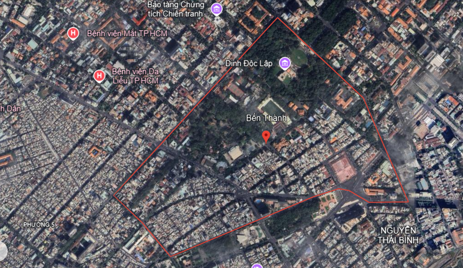 Ranh giới hành chính của phường Bến Thành quận 1 TPHCM (Nguồn: Google Earth)