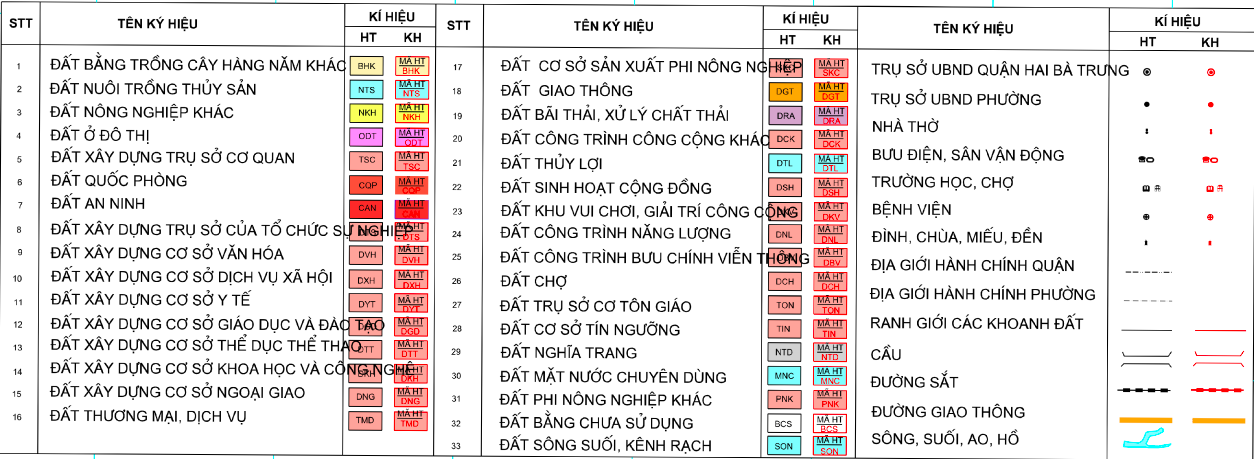 Ký hiệu các loại đất trên bản đồ quy hoạch (Ảnh: Ứng dụng công khai thông tin đất đai TP Hà Nội)