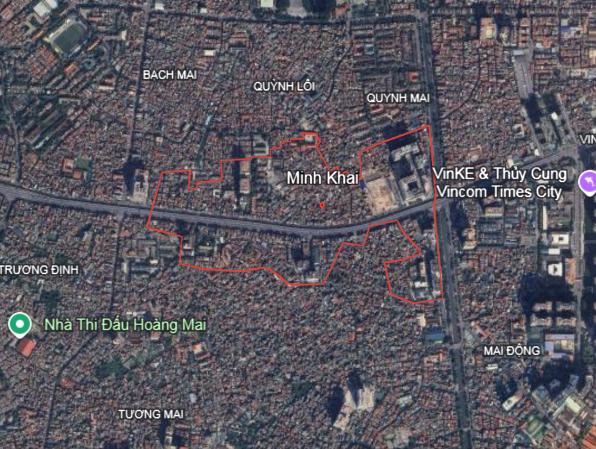 Ranh giới phường Minh Khai, quận Hai Bà Trưng, Hà Nội (Nguồn: Google Earth)