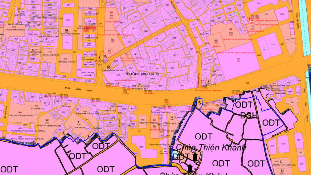 Bản đồ quy hoạch phường Minh Khai (Nguồn: Ứng dụng công khai thông tin đất đai thành phố Hà Nội)