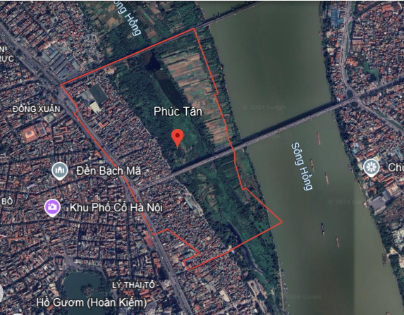 Ranh giới hành chính phường Phúc Tân quận Hoàn Kiếm Hà Nội (Nguồn: Google Earth)
