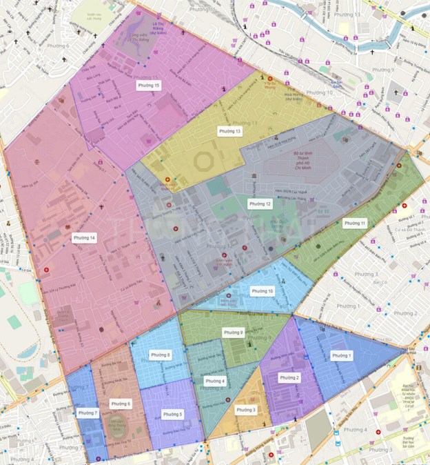 Bản đồ hành chính Quận 10 – Phân chia 15 phường