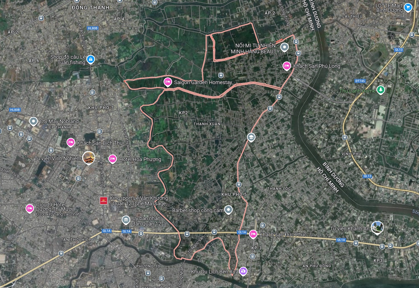 Ranh giới hành chính của phường Thạnh Xuân quận 12 TP HCM (Ảnh: Google Maps)