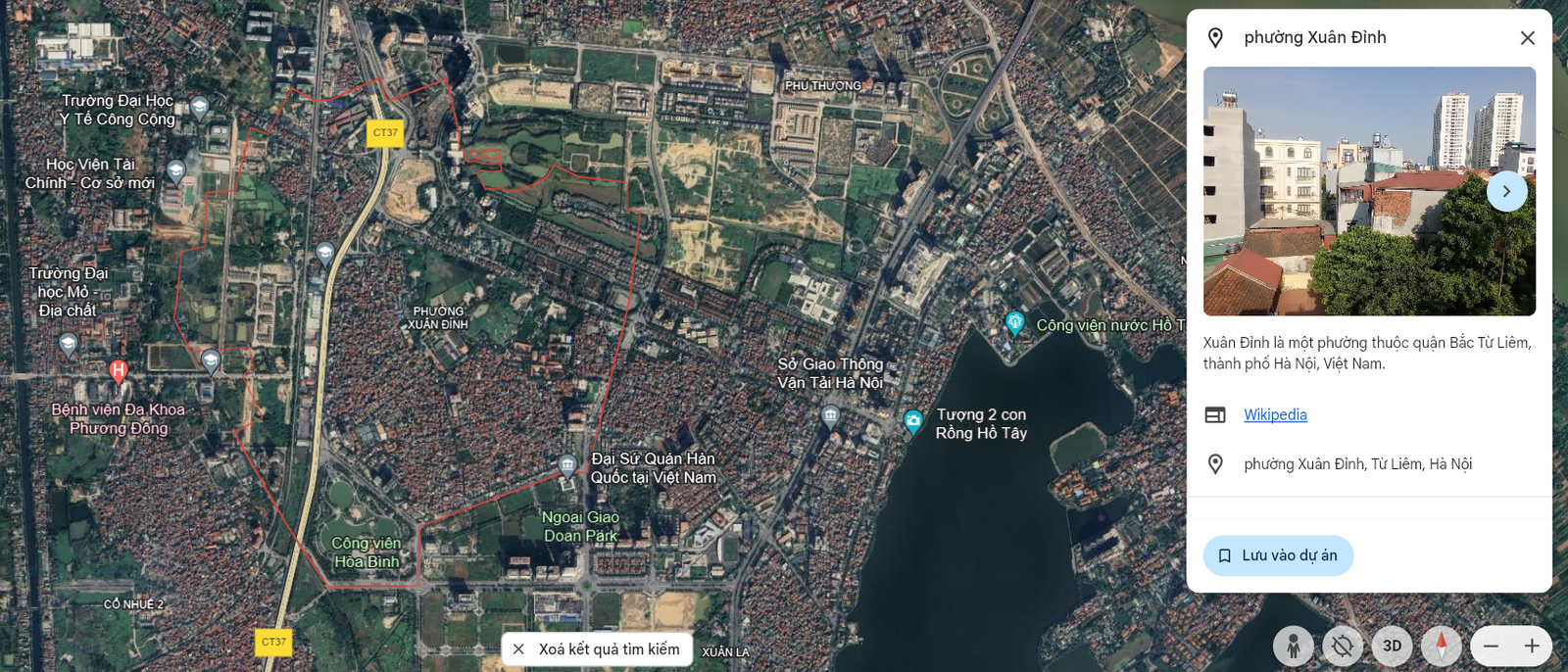 Ranh giới hành chính phường Xuân Đỉnh (Nguồn: Google Earth)