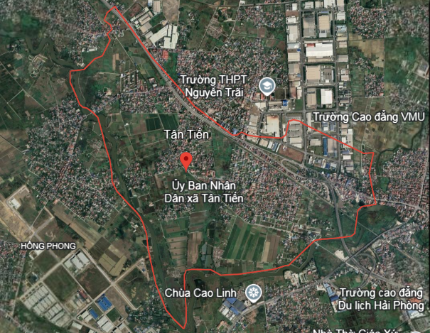 Ranh giới của xã Tân Tiến huyện An Dương (Nguồn: Google Earth)
