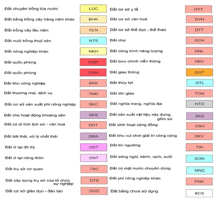 Bảng Các Ký Hiệu Màu Sắc Trên Bản Đồ Quy Hoạch Sử Dụng Đất