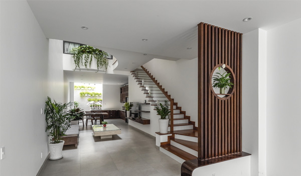 • Trang trí cây xanh: Cây xanh ở cửa chính hoặc dọc cầu thang giúp làm dịu dòng khí, ngăn chặn vận khí tiêu cực.