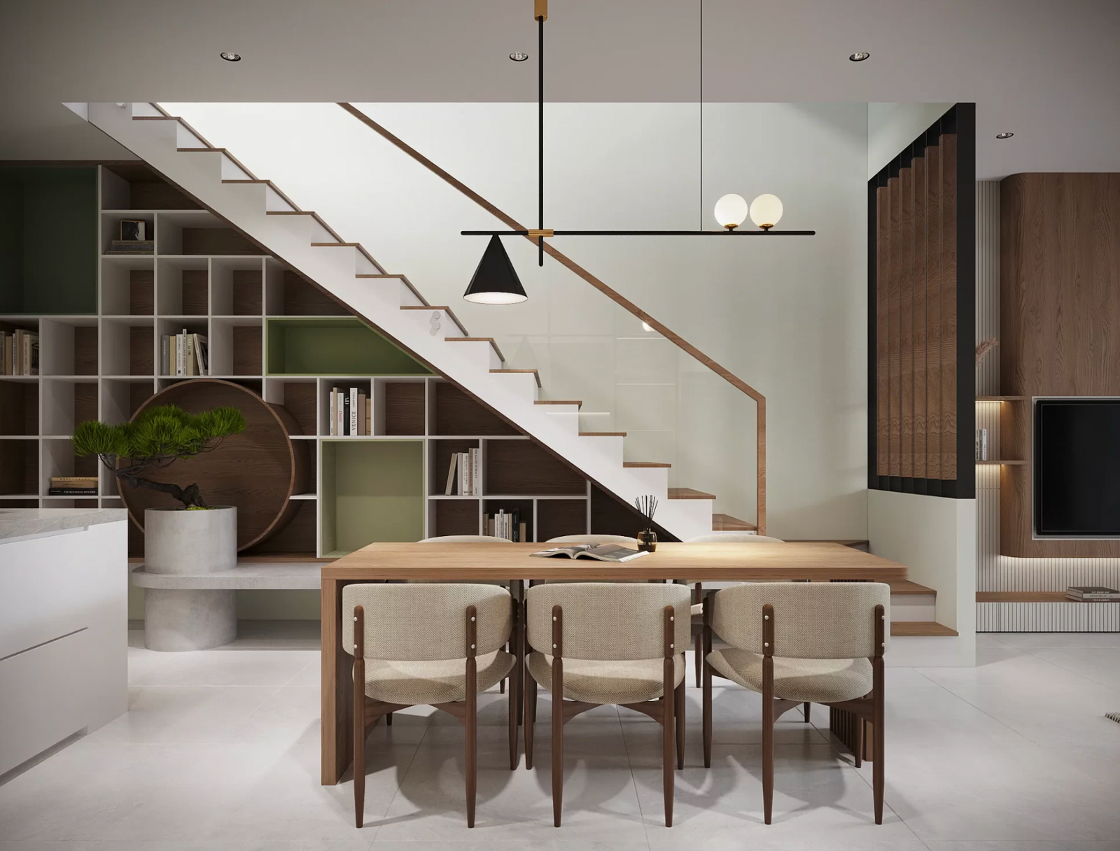 - Có thể tận dụng không gian dưới gầm cầu thang để trang trí hoặc lưu trữ tùy ý gia chủ.