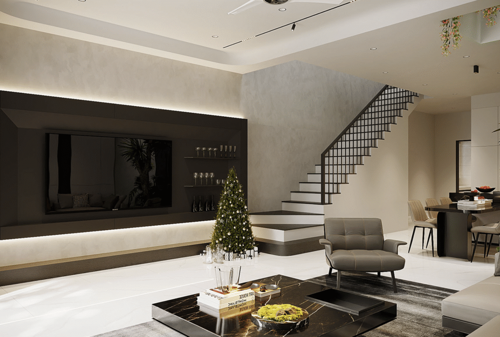 Màu sắc cầu thang dọc nên hài hòa với màu tường và nội thất để tạo sự thống nhất trong không gian sống.