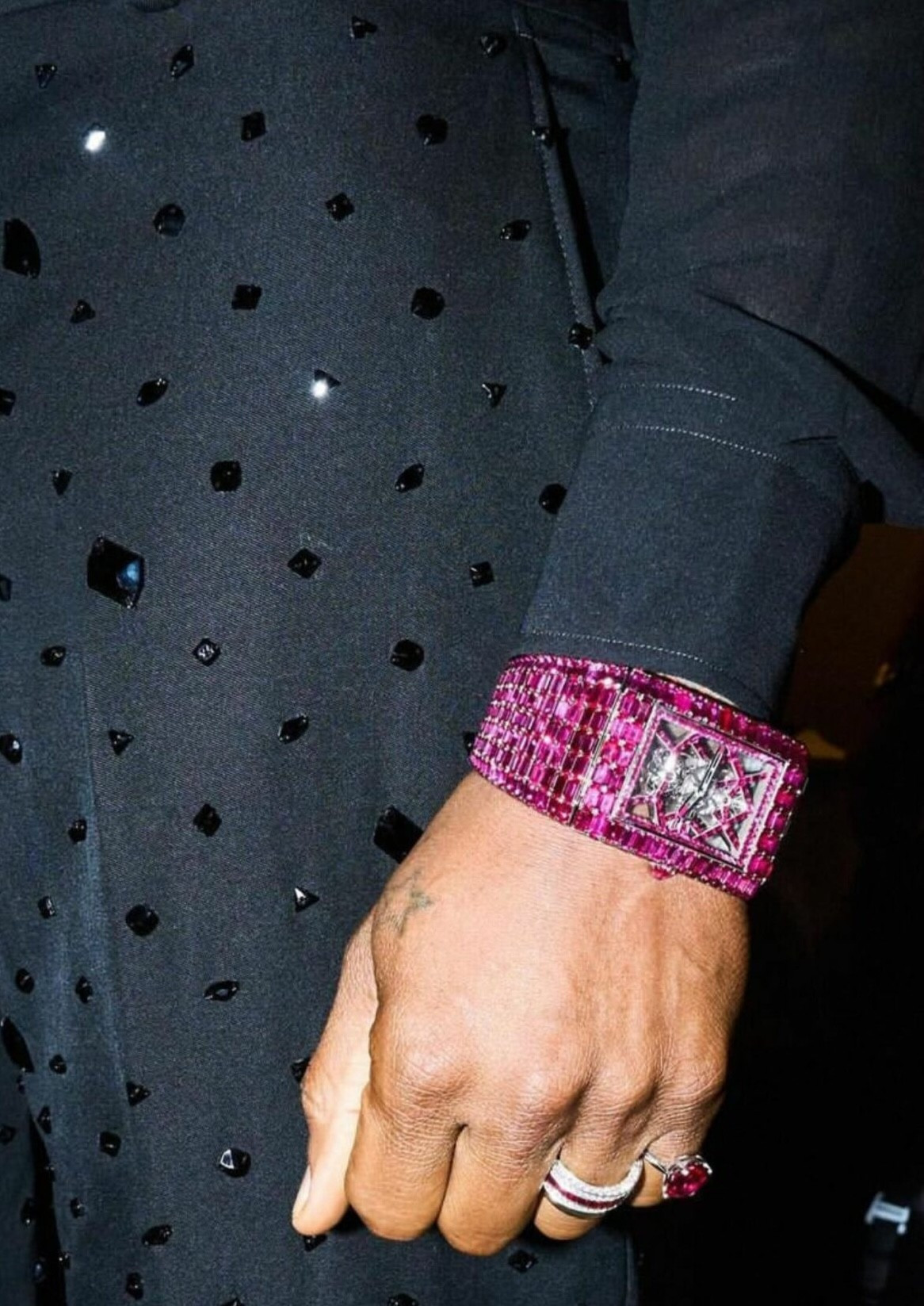 Nam ca sĩ R&B Usher đã diện chiếc đồng hồ Jacob & Co màu hồng trị giá 5 triệu USD này tại sự kiện thời trang Met Gala năm 2024.