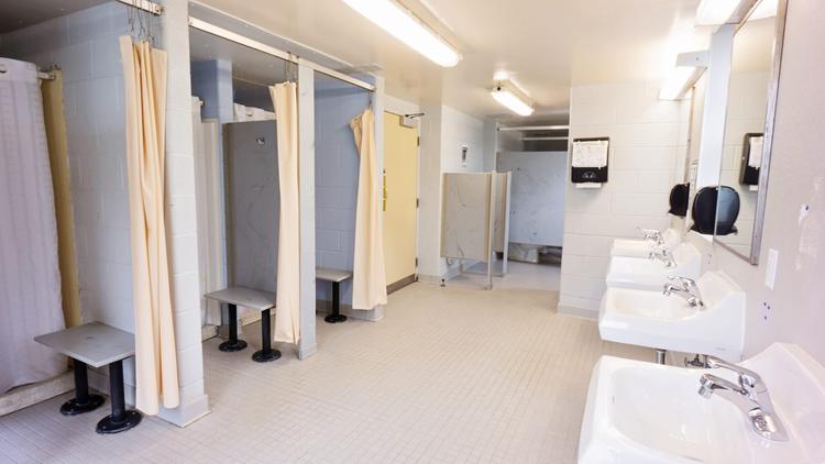 Khu vực phòng tắm dành cho nam trong khu KTX của một trường học. Ảnh: RMA