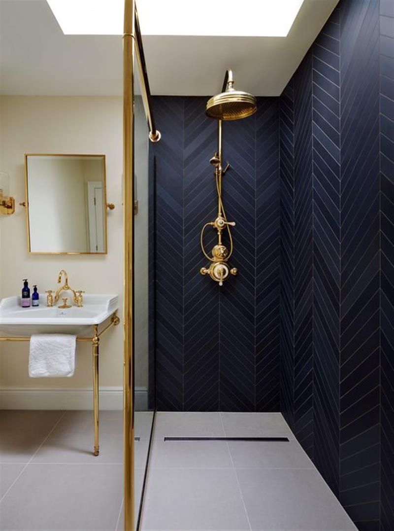 Không chỉ dừng lại ở mặt sàn, ứng dụng họa tiết xương cá bằng vật liệu gốm sứ đang thống trị các không gian phòng tắm, nhà bếp hoặc các bức tường điểm nhấn (accent wall). Sự kết hợp giữa bề mặt men bóng và những đường chữ V sắc sảo tạo nên một vẻ đẹp thẩm mỹ sắc nét, hiện đại và cực kỳ “clean”.