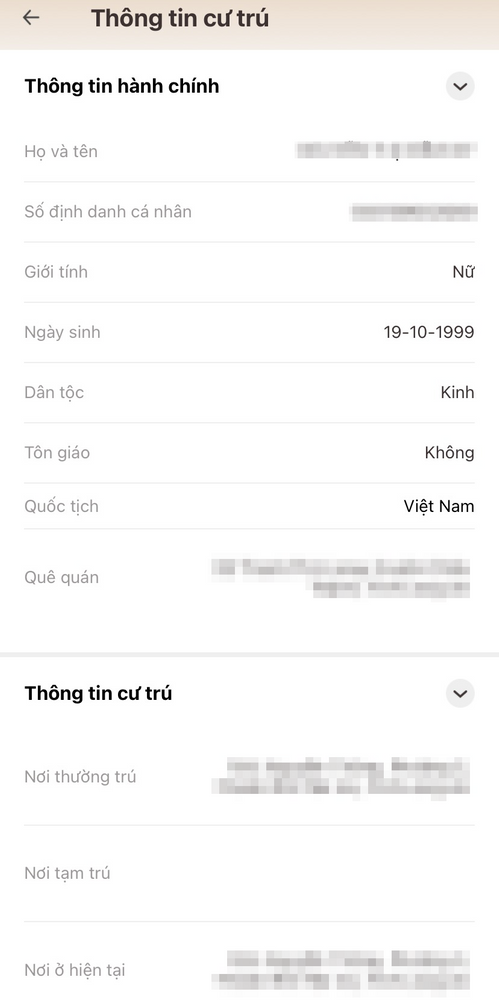 • Bước 4: Thông tin cư trú của bạn sẽ hiển thị trên màn hình.