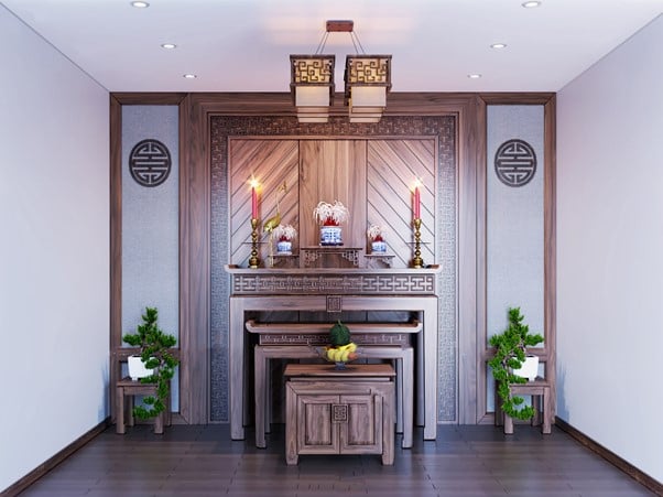 - Tránh gió lùa: Hạn chế đặt bàn thờ ở nơi có gió mạnh thổi trực tiếp, có thể làm tắt hương đèn, ảnh hưởng đến sự trang nghiêm.