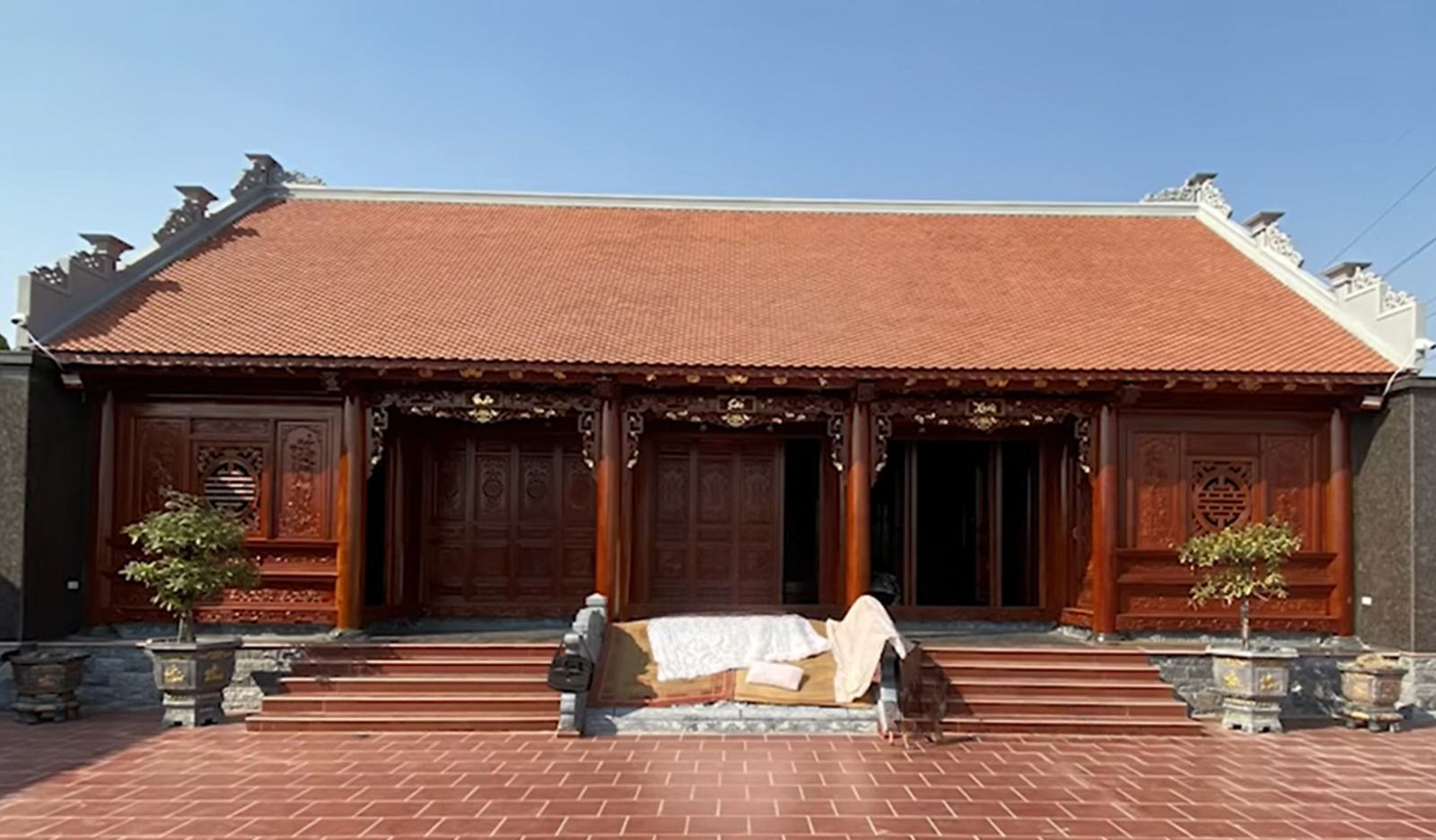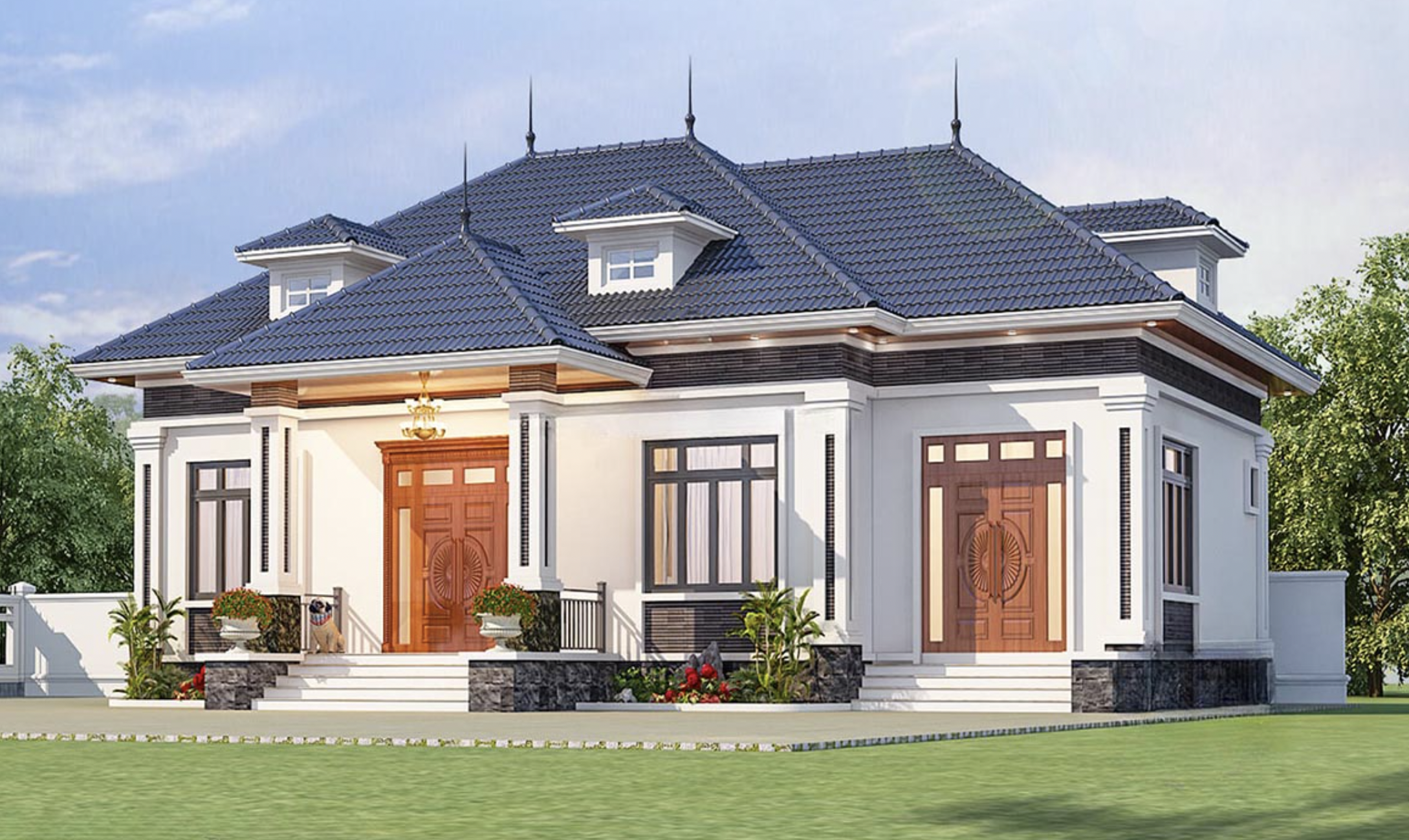 - Tính thẩm mỹ cao: Thiết kế 5 gian tạo ra sự cân đối và hài hòa với cảnh quan xung quanh. Vật liệu như ngói đỏ và gỗ tự nhiên không chỉ bền và đẹp mà còn mang đến vẻ sang trọng. Đồng thời tạo ra không gian sống thoải mái, gần gũi.