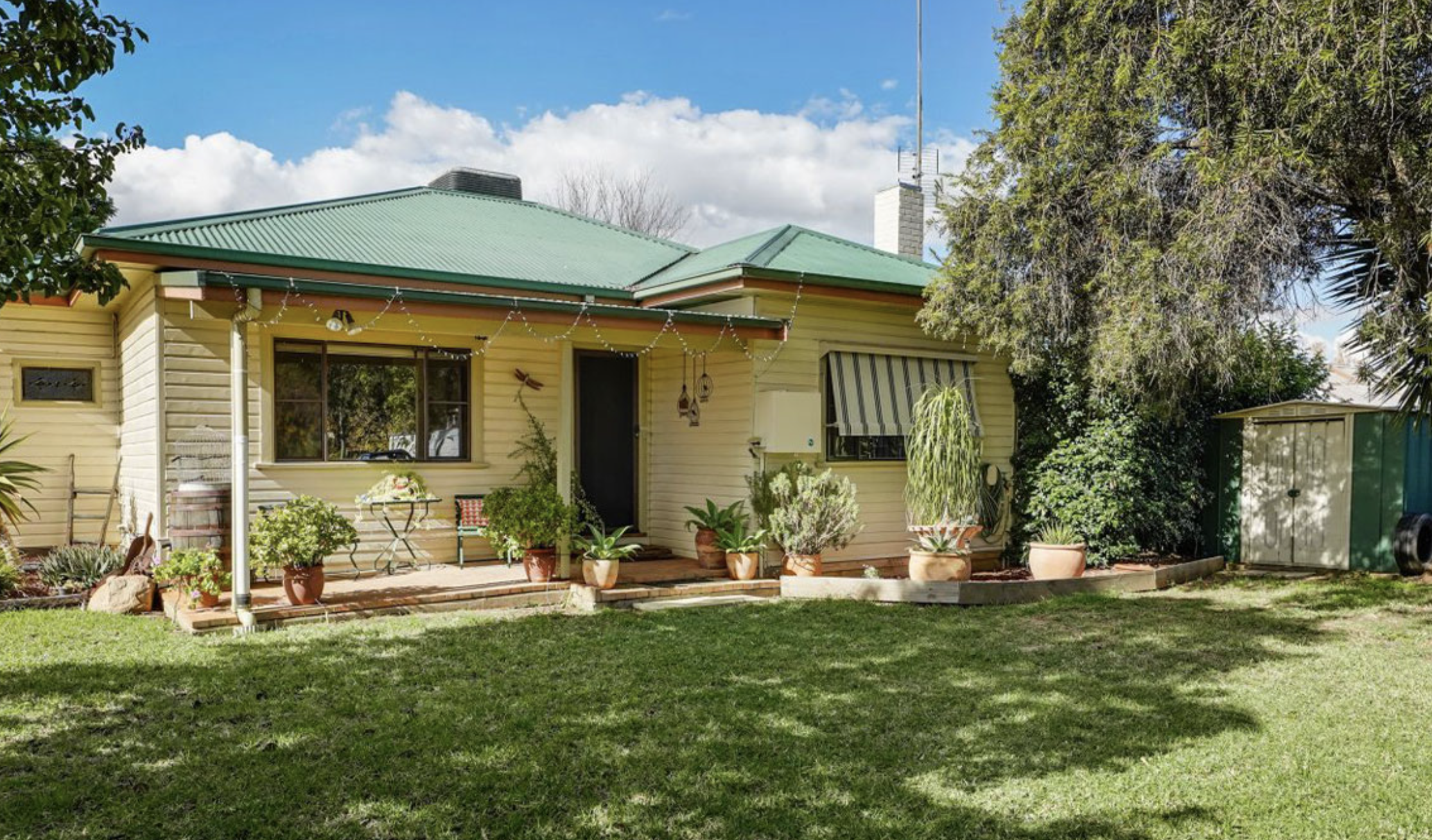 Nền mái xanh nổi bật hài hòa với tường sơn vàng kem nhẹ nhàng khiến ngôi nhà có vẻ mộc mạc, gần gũi với thiên nhiên. Điểm nhấn của kiểu nhà này là sân vườn rộng, với nhiều chậu cây cảnh và tiểu cảnh xung quanh lối vào. Thiết kế tổng thể tuy đơn giản nhưng vẫn hài hòa, tối ưu hóa ánh sáng tự nhiên và không gian xanh, là lựa chọn lý tưởng cho những ai yêu thích cuộc sống thanh bình tại nông thôn hay vùng ngoại ô.