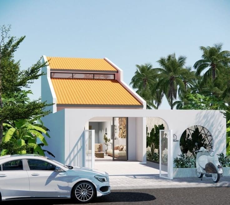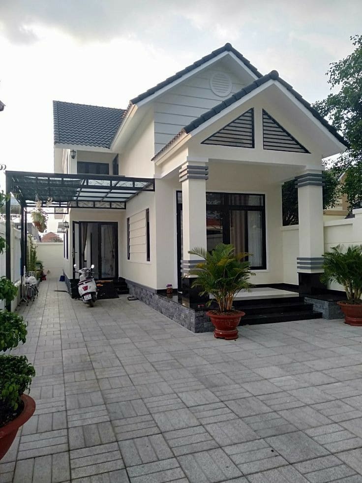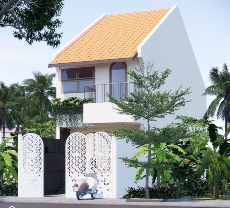 Sự kết hợp của mái ngói đỏ và tường sơn trắng là lựa chọn vừa cổ điển vừa hiện đại. Màu trắng tôn lên vẻ nổi bật của mái ngói đỏ, mang đến vẻ ngoài đầy sự sang trọng và thanh thoát. Ngoài ra, gam trắng cũng làm cho không gian sáng sủa, rộng và thoáng mát hơn, đặc biệt thích hợp với những ngôi nhà diện tích hạn chế. Đây là sự kết hợp dễ ứng dụng cho nhiều phong cách nhà ở khác nhau, từ truyền thống đến hiện đại.