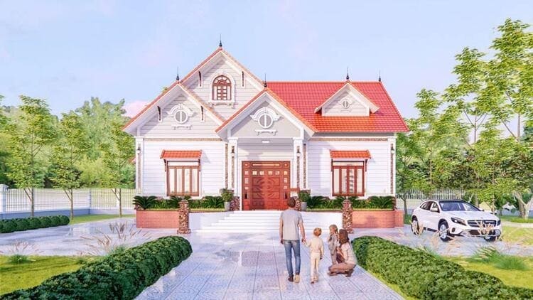 Nhà mái ngói đỏ 1 tầng mang vẻ đẹp truyền thống, gợi nhớ làng quê Việt Nam thanh bình. Thiết kế nhà thường chú trọng sự hòa nhập với thiên nhiên, với cửa chính và cửa sổ bố trí hợp lý để tối ưu ánh sáng tự nhiên và gió trời. Kiểu nhà này không chỉ đáp ứng nhu cầu sống mát mẻ, thoải mái mà còn phù hợp với nhiều điều kiện khí hậu tại Việt Nam.