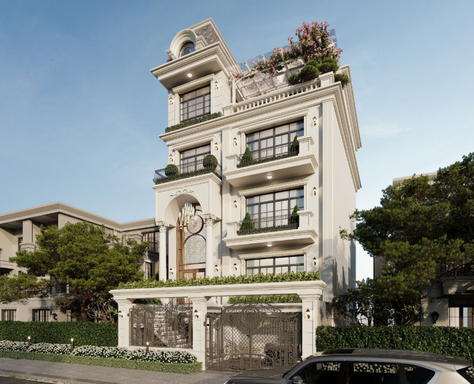 Mẫu thiết kế theo phong cách tân cổ điển, có gara ô tô, mở ra một thế giới sang trọng và tinh tế. Sự kết hợp hoàn hảo giữa phong cách tân cổ điển và tiện ích gara mang lại không gian sống vượt trội cho người có nhu cầu sử dụng xe hơi tại nhà. Sự tinh tế của kiến trúc tân cổ điển gặp gỡ với sự tiện nghi của gara ô tô tạo nên câu chuyện kiến trúc ấn tượng, thể hiện cá tính và gu thẩm mỹ của chủ nhân.