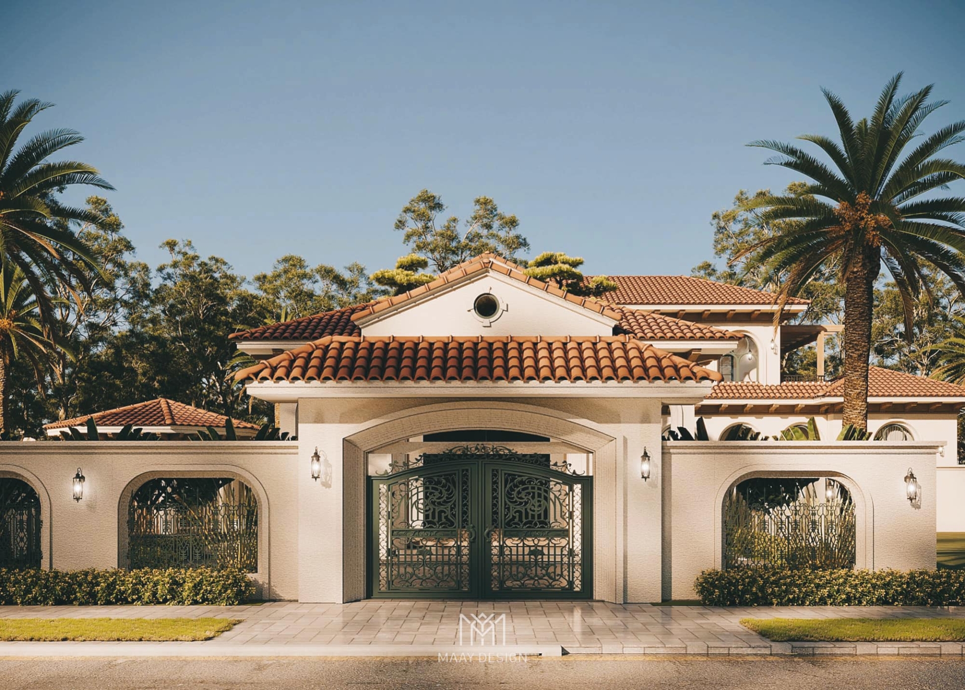 Ngôi nhà mang một hơi thở Địa Trung Hải nhẹ nhàng với tường trắng thanh thoát, mái ngói đỏ nổi bật dưới nắng nhiệt đới. Cổng vòm uốn cong mềm mại – như để gió và ánh sáng luôn có lối đi. Ban công rộng mở – không chỉ để nhìn ra ngoài, mà còn để kết nối thiên nhiên vào trong.