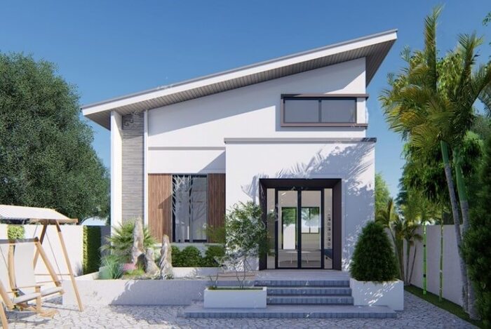 Nhà cấp 4 một mái mang đến vẻ đẹp hiện đại và đơn giản. Với một mái nhà dốc về một phía, ngôi nhà trông gọn gàng và tinh tế hơn. Kiểu mái này thường được lựa chọn cho những ngôi nhà có diện tích nhỏ hoặc những gia đình trẻ thích sự tối giản. Ưu điểm của một mái là dễ thi công, tiết kiệm chi phí, tạo không gian mở và thoáng đãng.