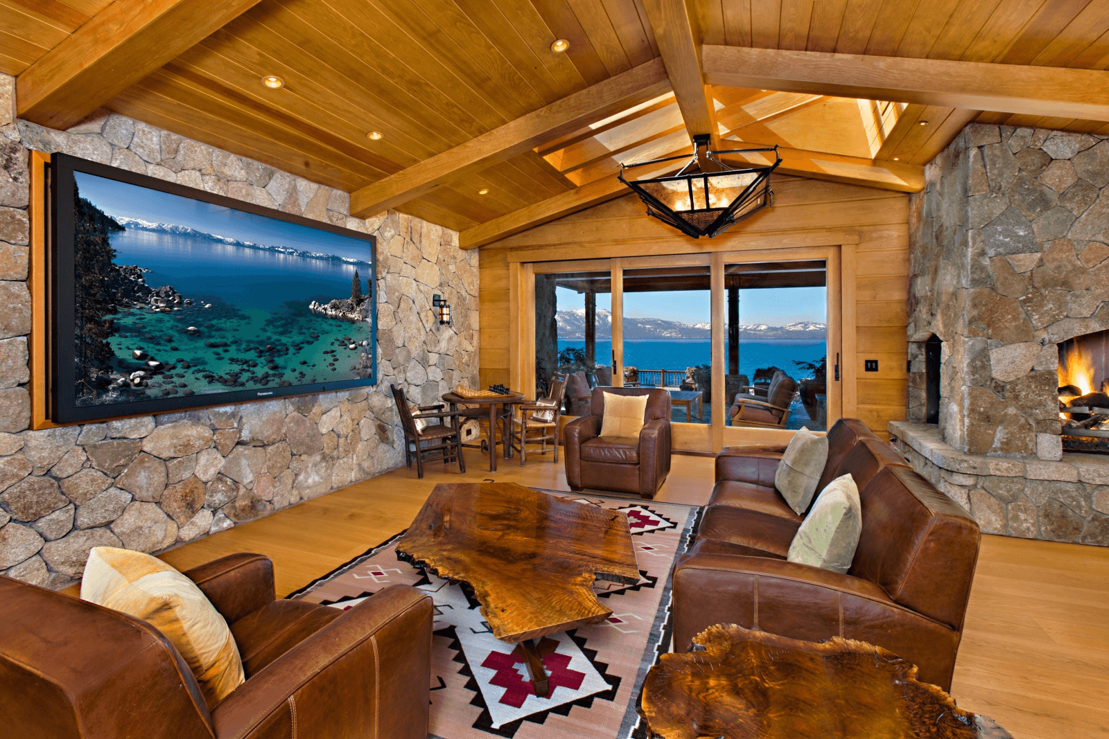 Lấy cảm hứng từ kiến trúc Nhật Bản, dinh thự kết hợp gỗ, đá và kính, tạo không gian ngập tràn ánh sáng và hòa mình vào thiên nhiên. Nội thất sang trọng nhưng tinh tế, với sofa nhung, lò sưởi ấm áp và đường nét hài hòa giữa cổ điển và hiện đại.