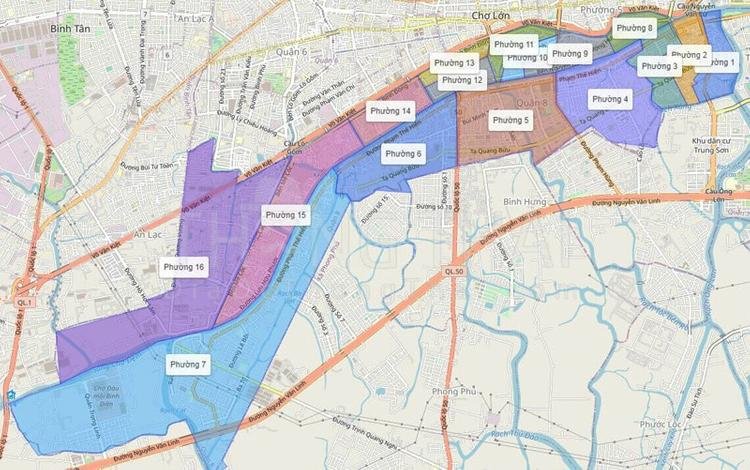 Bản đồ địa lý quận 8 trước sáp nhập 2025. Ảnh: Maisonoffice