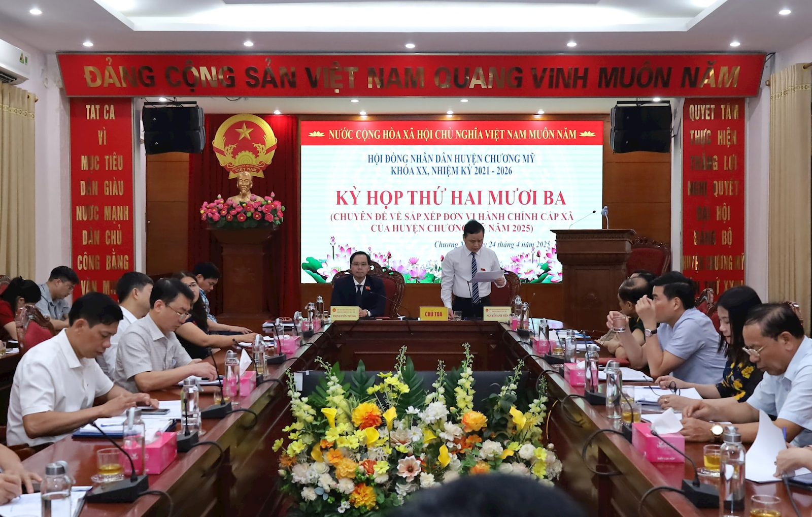 Kỳ họp HĐND lấy ý kiến về việc sắp xếp lại đơn vị hành chính huyện Chương Mỹ (Nguồn: Hà Nội mới)