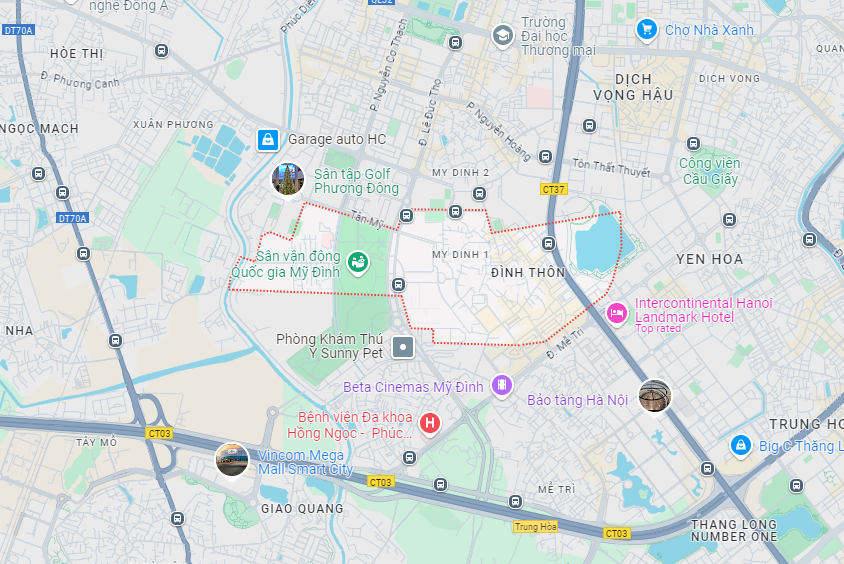 Vị trí địa lý thuận lợi của phường Mỹ Đình 1, quận Nam Từ Liêm, Hà Nội (Nguồn: Google Maps)