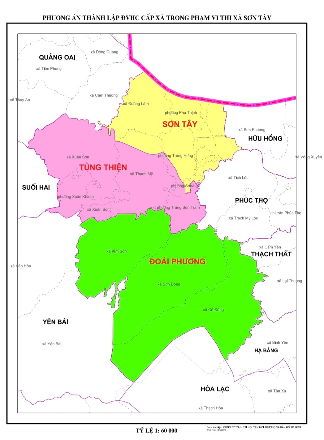 - Đơn vị hành chính Sơn Tây: Sẽ bao gồm toàn bộ diện tích và dân số của các phường Phú Thịnh, Ngô Quyền, Viên Sơn, xã Đường Lâm. Đồng thời, sáp nhập phần lớn diện tích và dân số của các phường Sơn Lộc, Trung Hưng, cùng một phần diện tích của xã Thanh Mỹ. Đơn vị này có diện tích khoảng 23,44km2 và dự kiến quy mô dân số khoảng 51.000 người.