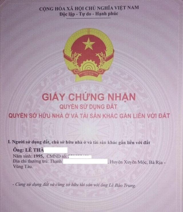 • Giấy chứng nhận quyền sử dụng đất (bản gốc).