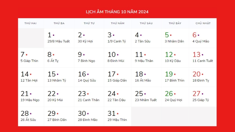 Ngày tốt tháng 10 năm 2024 (nguồn: dienmaycholon)