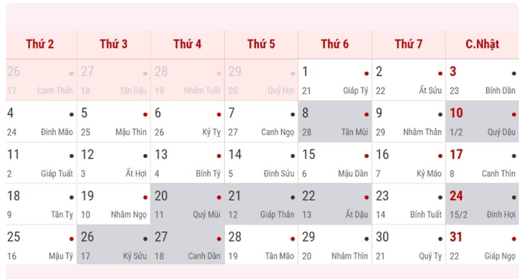 Tháng 3 Dương lịch năm 2024 trùng với thời điểm cuối tháng Giêng Âm lịch, đánh dấu sự kết thúc của giai đoạn nghỉ lễ Tết và quay trở lại với nhịp sống thường nhật. Đây là thời điểm quan trọng để mọi người lên kế hoạch và thực hiện các dự định quan trọng, do đó việc lựa chọn ngày lành tháng tốt trở nên cần thiết.