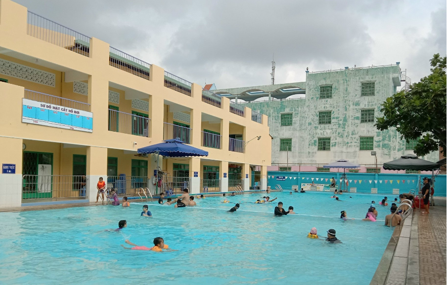 Bên cạnh đó, bể bơi còn cung cấp đầy đủ các tiện ích đi kèm như khu vực thay đồ, nhà vệ sinh sạch sẽ, phao cứu sinh và dịch vụ dạy bơi bởi các huấn luyện viên chuyên nghiệp.