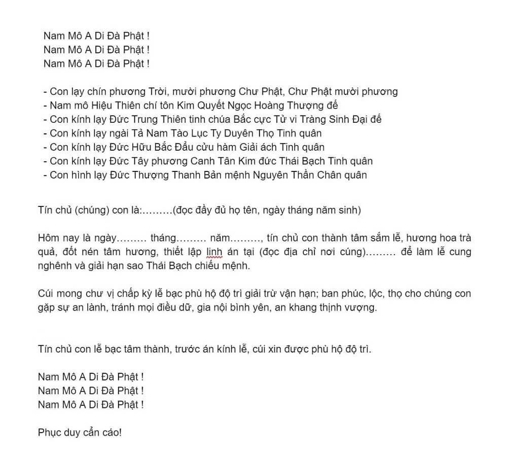 Tham khảo văn khấn cúng sao Thái Bạch.