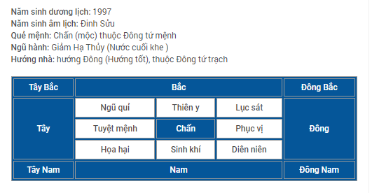 Hướng Tốt Hợp Tuổi 1997
